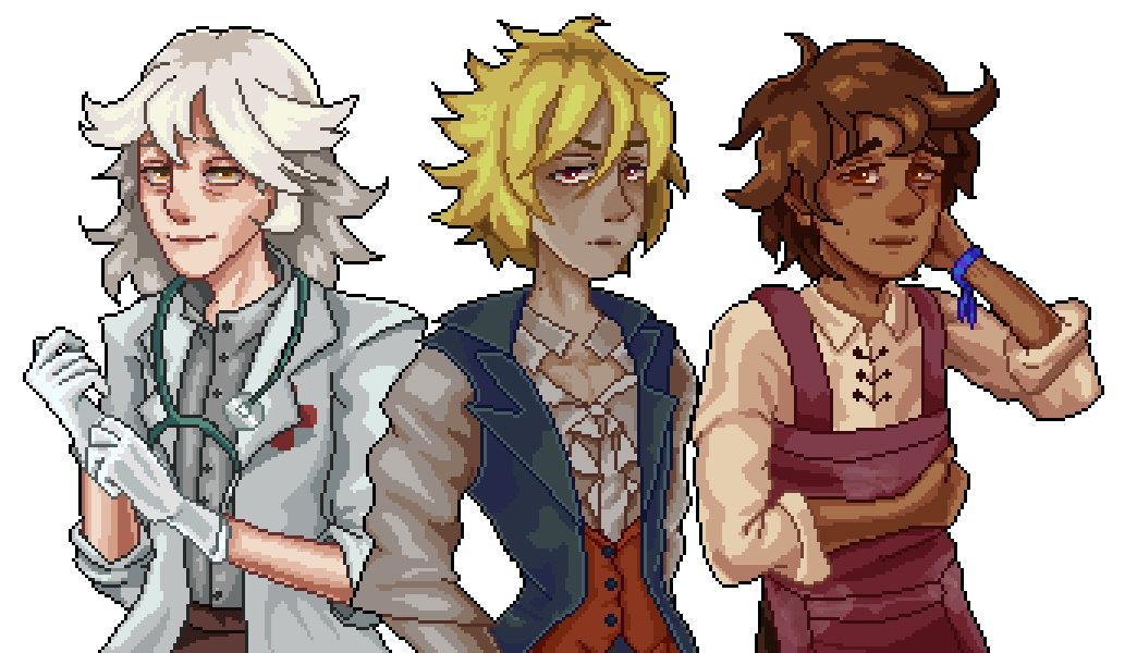 2D illustrations, pixel art and 3D character art and animation! with a very inconsistent art style.